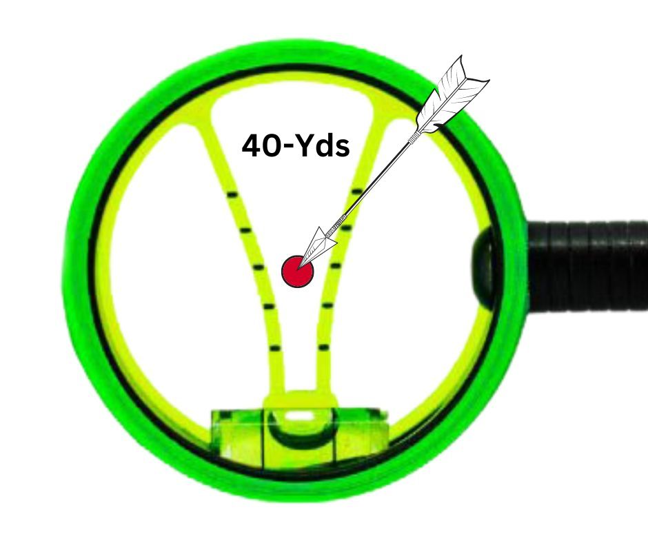 Simply center the intended arrow impact point between the applicable pair of Stadia Tick Marks. The arrow will impact perfectly dead center between the two. (See Images P – Q below)