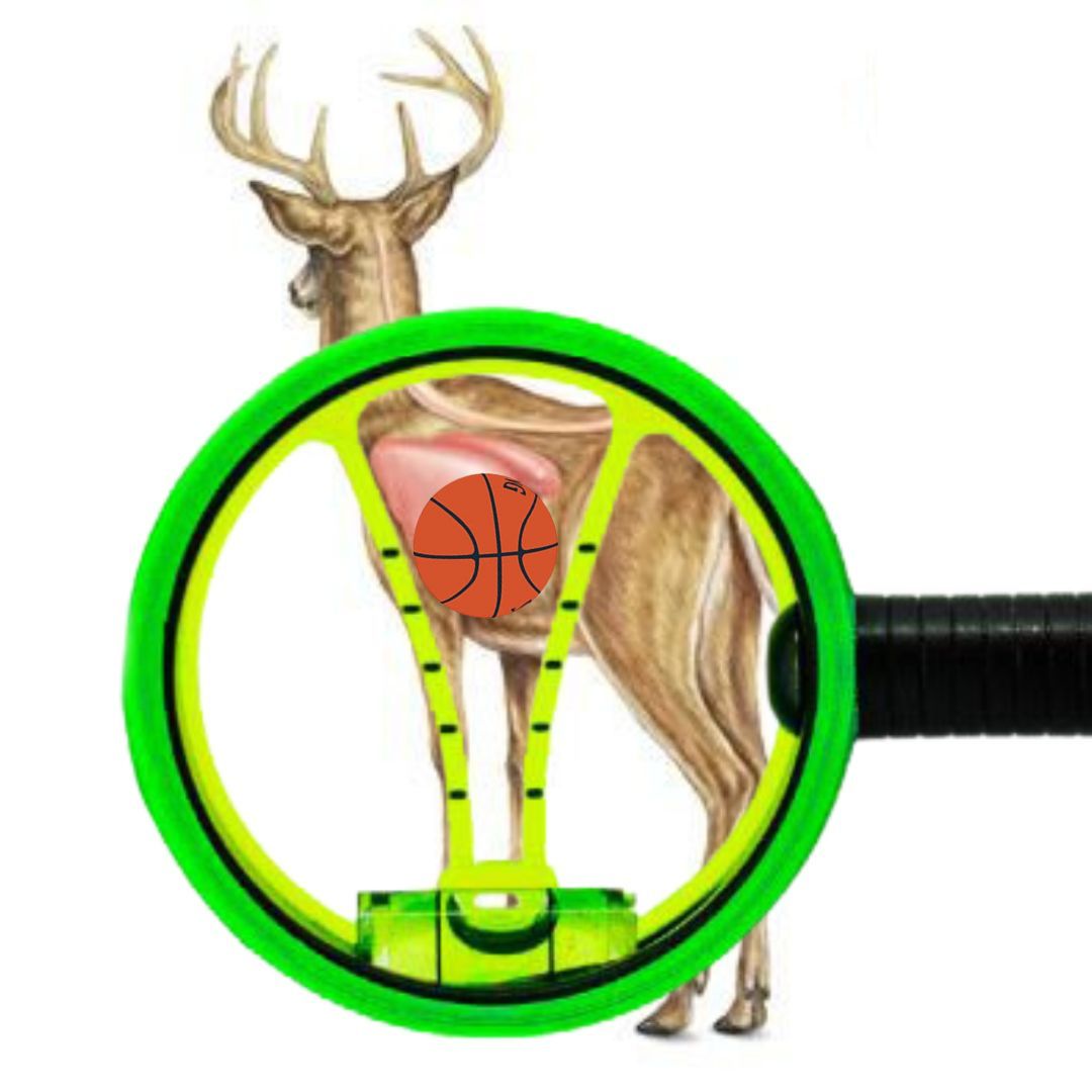When the V is raised to the degree where the inner walls of the V encompass the width of the vitals, the elevation of your bow’s trajectory path is matched. Thus, ranging distance is no longer relevant! Bull’s Eye Every Time!